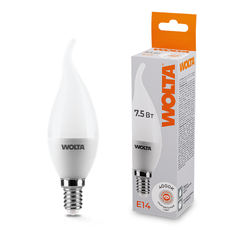 Светодиодная лампа WOLTA 7.5Вт 4000K E14 свеча на ветру матовая 25SCD7.5E14 — купить в Bronko‑Decor